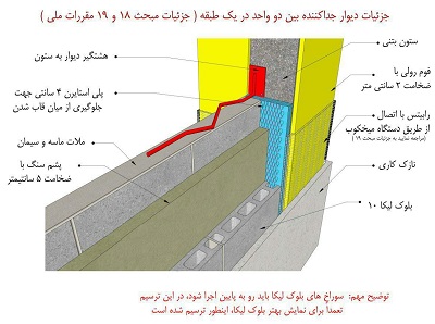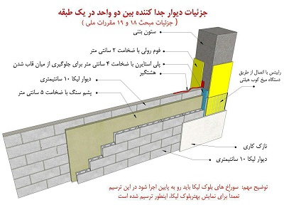 جزئیات دیوار جداکننده بین دو واحد در یک طبقه