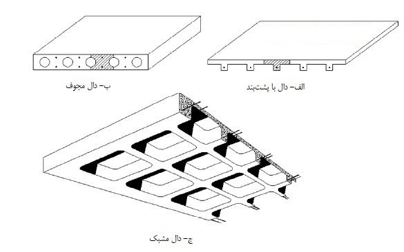 از آنجا كه مقاومت بتن در برابر نيروهای فشاری، بسيار خوب ولی در برابر نيروهای كششی كم است، در قطعات بتن مسلح،نيروهای كششی به طور عمده توسط آرماتورهای فولادی تحمل می شوند. به همين دليل، در تيرهای تحت خمش و دال ها، سعی بر اين است كه قسمتی از بتن تحت كشش، حذف شده و تنها آن مقدار از سطح بتن كه برای جای گذاری خاموت ها و آرماتورهای كششی لازم است، باقی بماند. اين كار به ويژه برای كاهش بار مرده سقف، دارای اهميت بوده و در عمل منجر به طرح دالهای مجوف، دال های با پشت بند، دال مشبك و در نهايت سقفهای تيرچه و بلوك شده است .