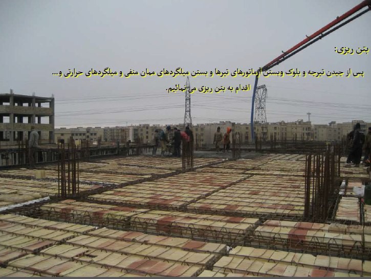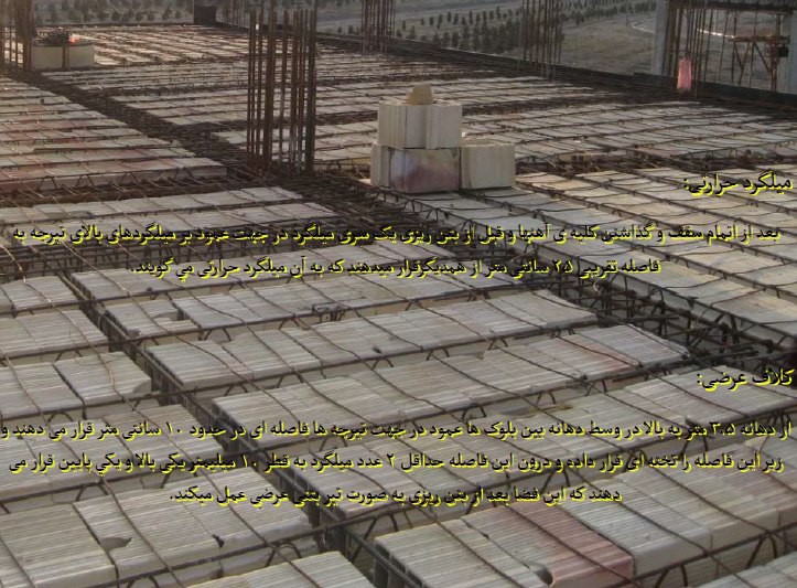 بقیه مراحل اجرای سقف تیرچه بلوک همانند اجرای سقف تیرچه کرومیت است که قبلا توضیح داده شده است .
